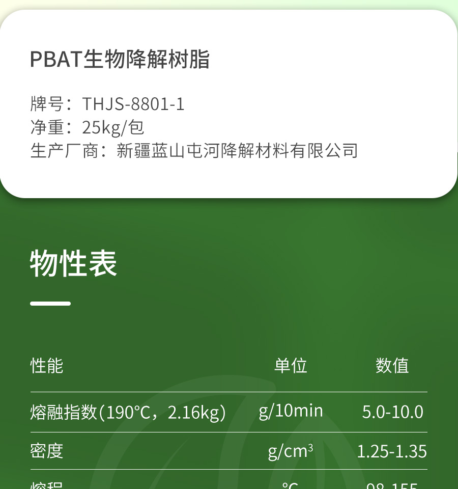 蓝山屯河PBAT生物降解吹膜级吸塑级聚酯复合材料8801-1