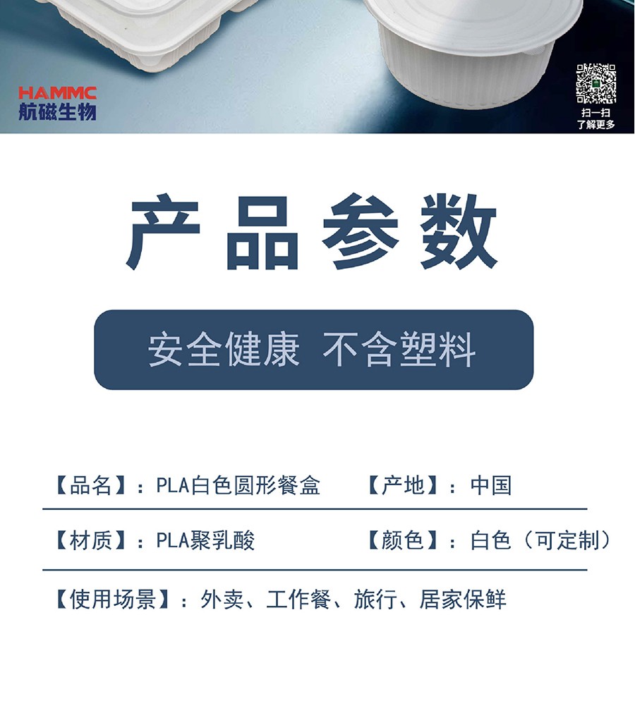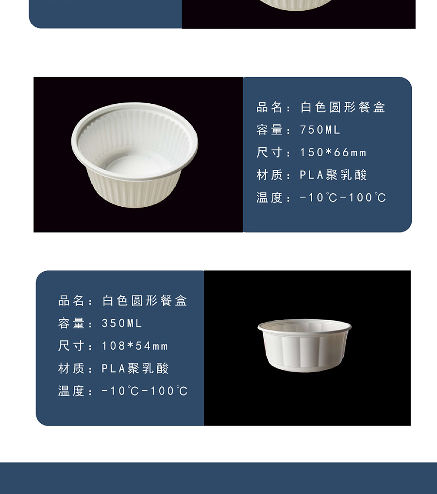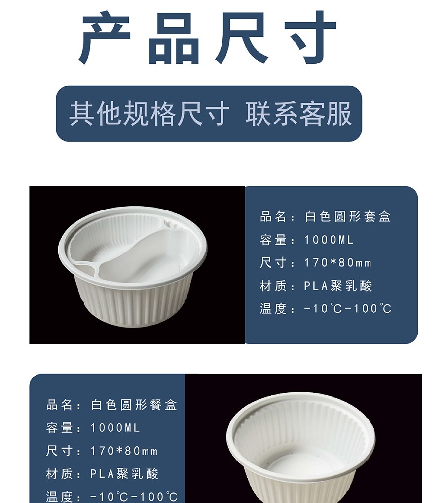 航磁生物轻薄款360ml白色圆形可降解餐盒300套/箱