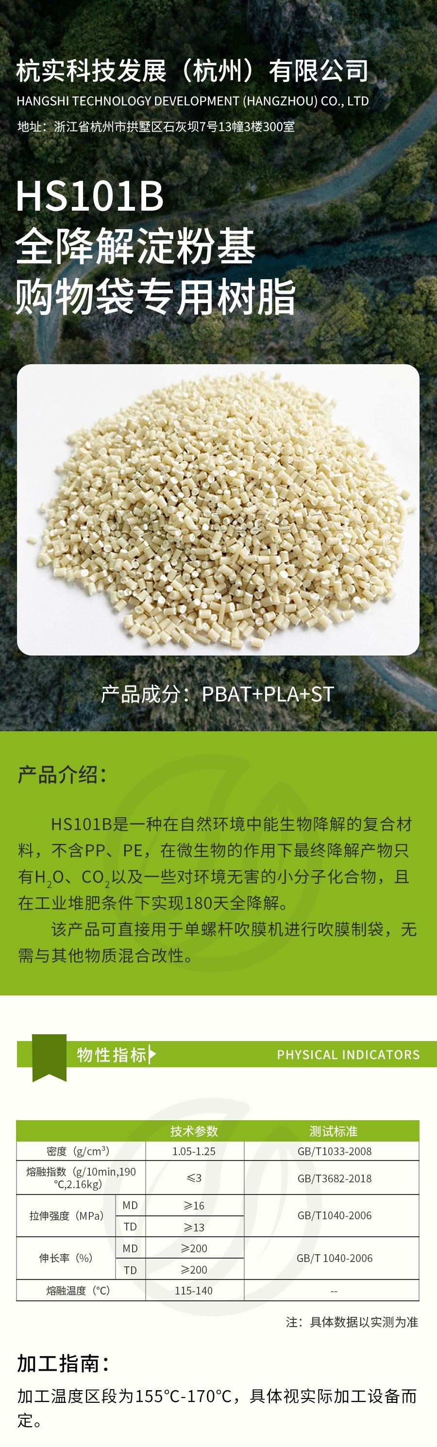 杭实科技全降解淀粉基购物袋专用树脂HS101B