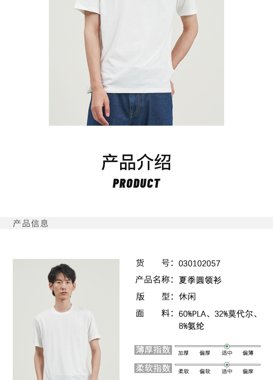 夏季百搭亲肤白色圆领短袖T恤男女同款聚乳酸玉米纤维