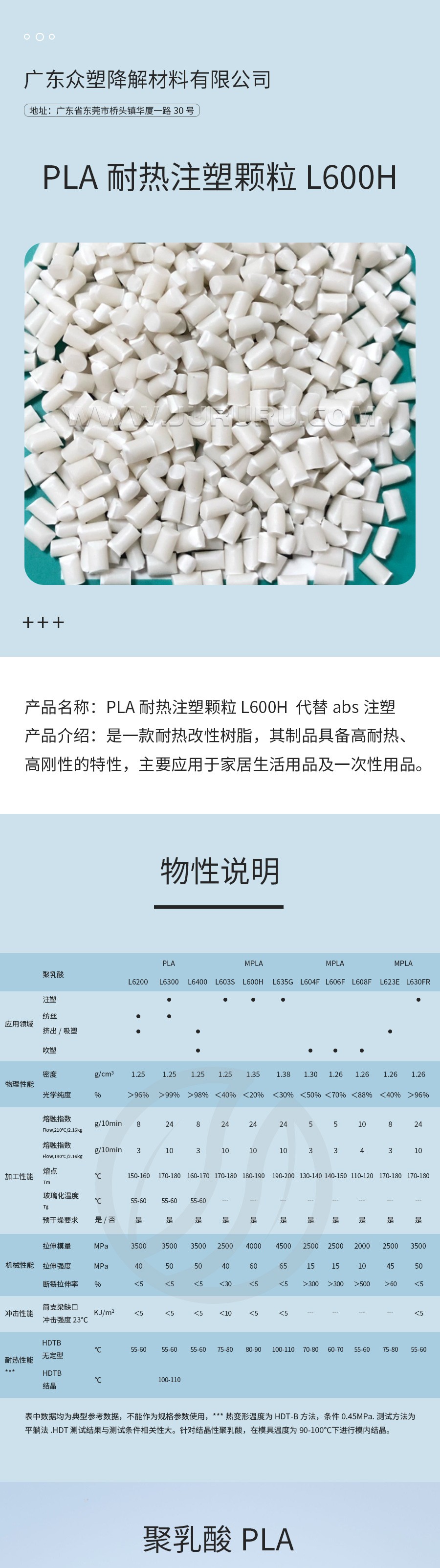 众塑 L600H PLA耐热注塑颗粒 代替abs注塑